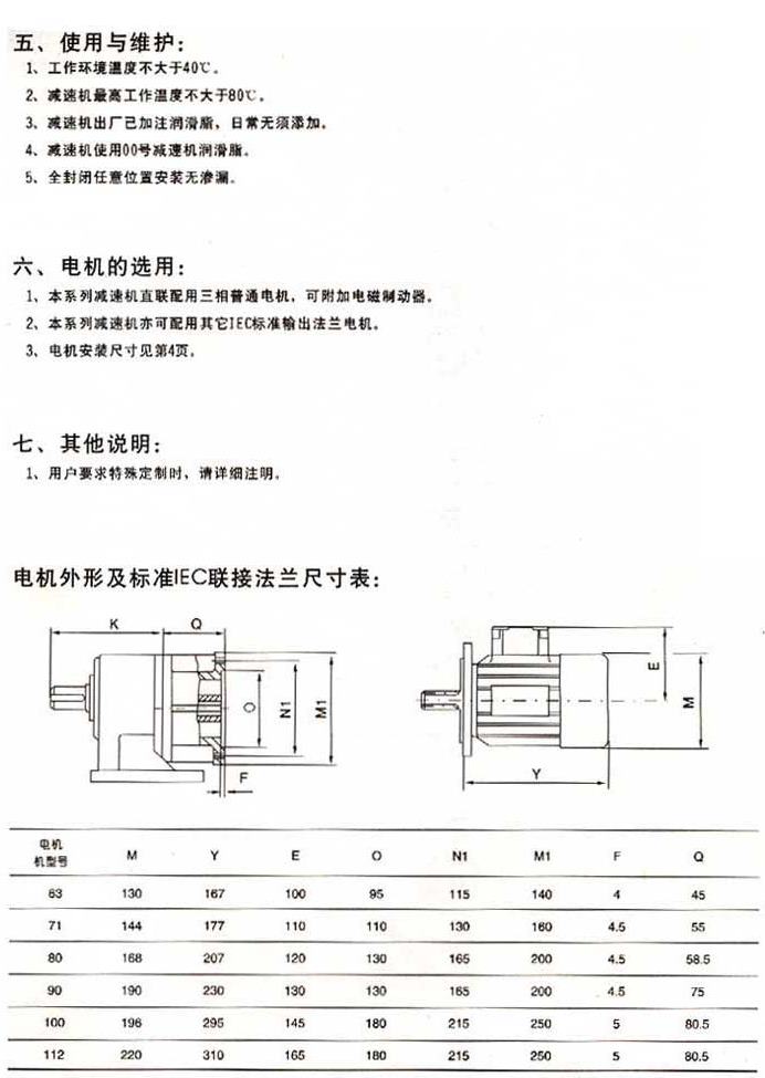 使用与维护电机的选用其他说明电机外型及标准IEC联结法兰尺寸表