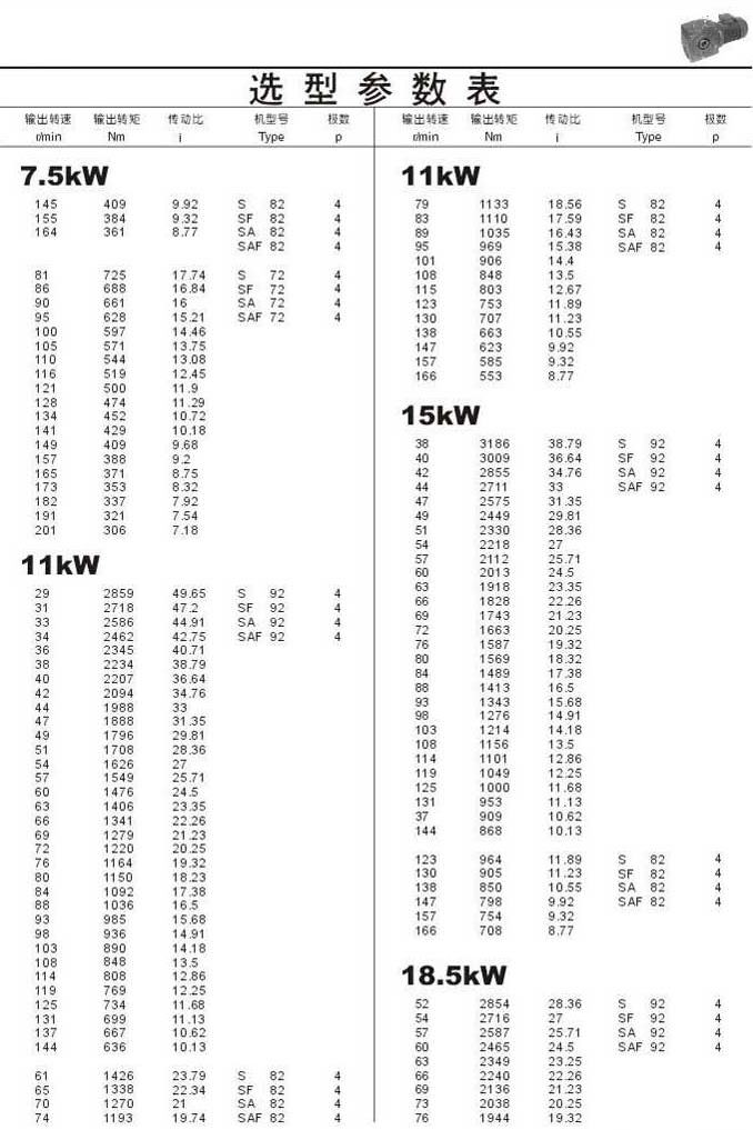 选型参数表7.5kW(续),11kW,15kW,18.5kW