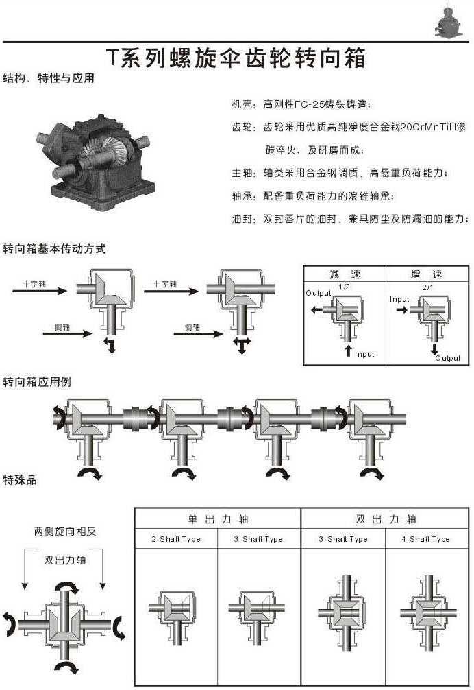 T系列螺旋伞齿轮转向箱结构.特性和应用,传动方式,应用例