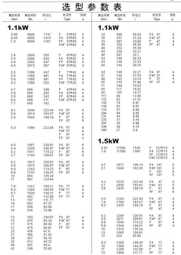 选型参数表1.1kW(续),1.5kW