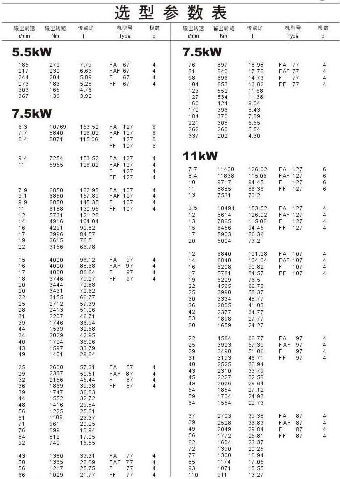 选型参数表5.5kW(续),7.5kW,11kW