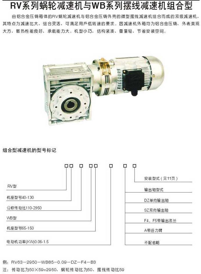 RV系列蜗轮减速机与WB系列摆线减速机组合型型号表示方法