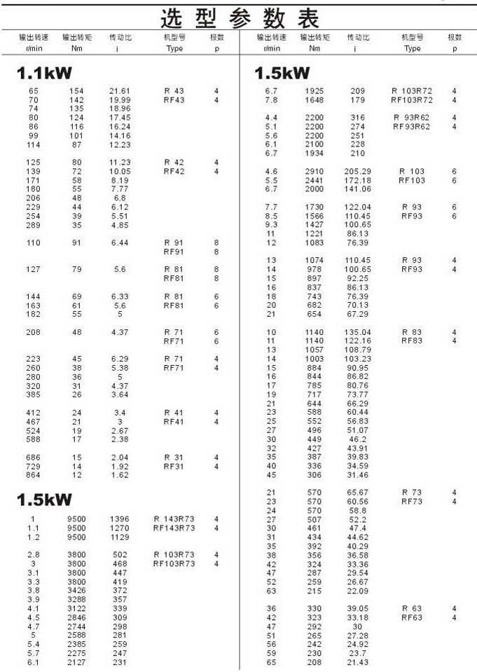 选型参数表1.1kW(续),1.5kW