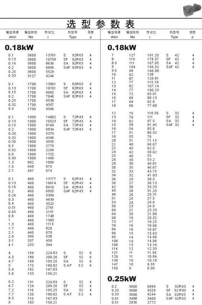 选型参数表0.18kW和0.25kW 76..