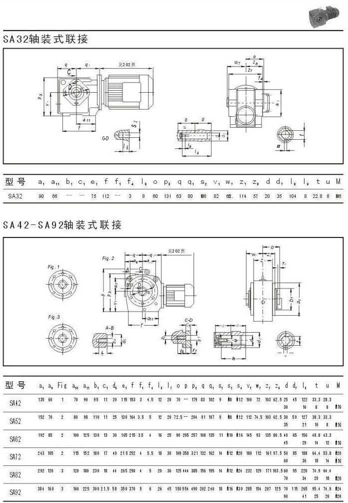 SA32轴装形式联结参数图表SA42-SA92轴装形式联结参数图表